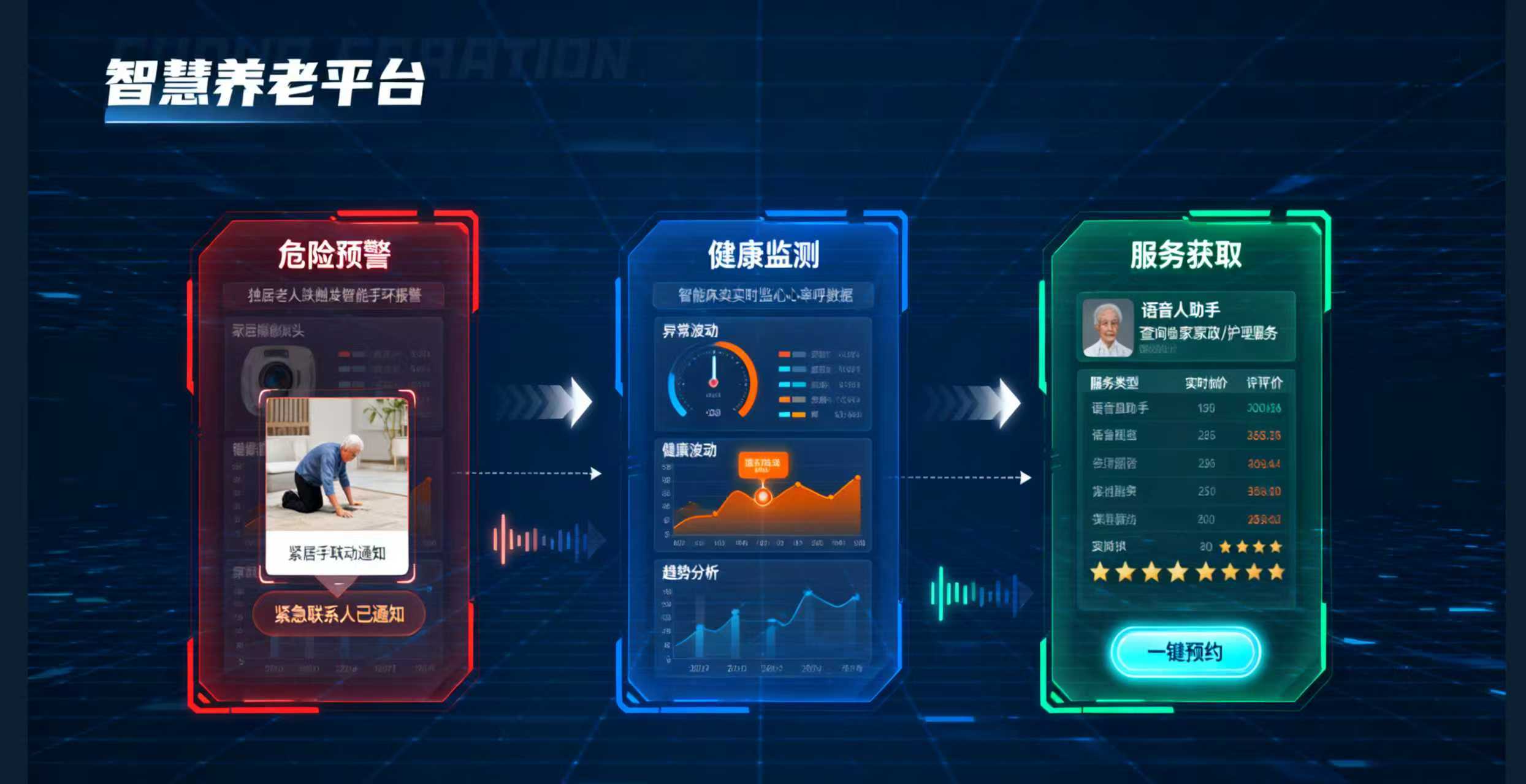 遵循在熟悉的环境中养老理念,利用现代信息技术搭建养老生活线上线下的社区,实现智慧养老、政府监管、服务预约、慢病管理、适老商城等。